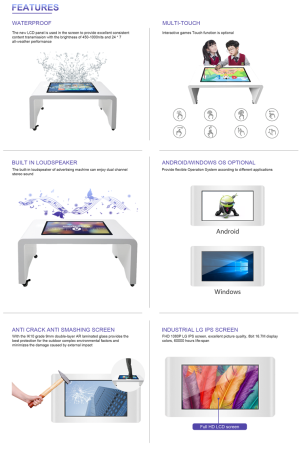 Connectivity Options: Many touch tables offer connectivity features such as Wi-Fi, Bluetooth, and HDMI ports, enabling users to link their devices and share content seamlessly.